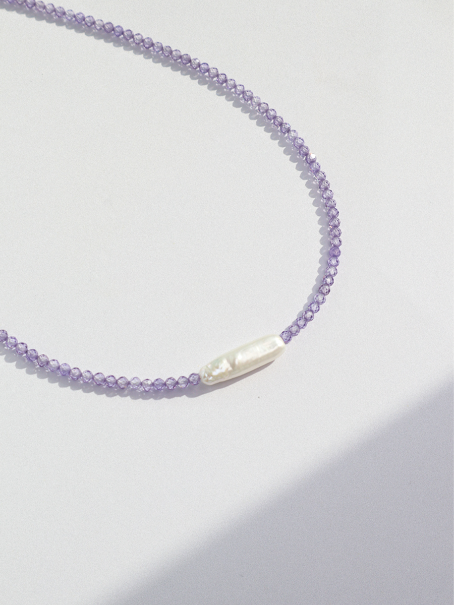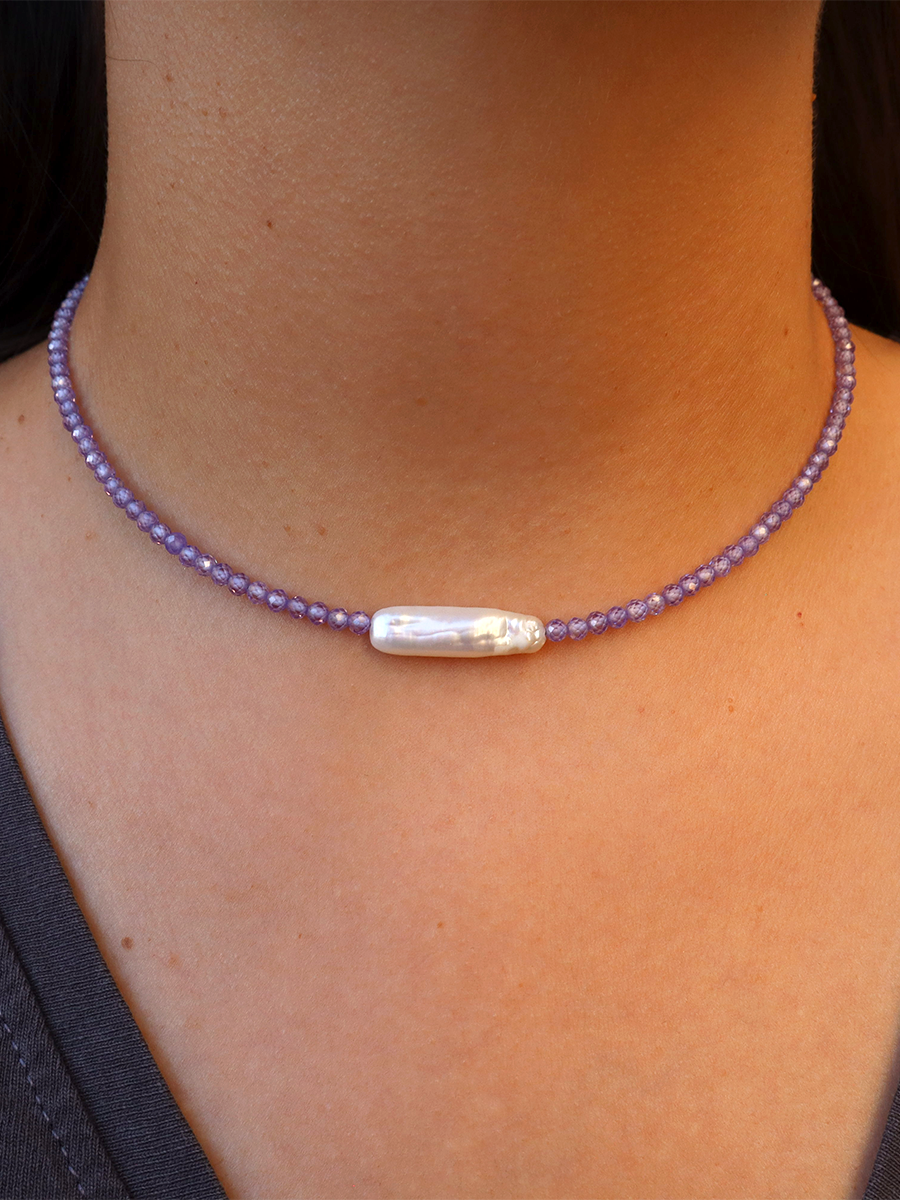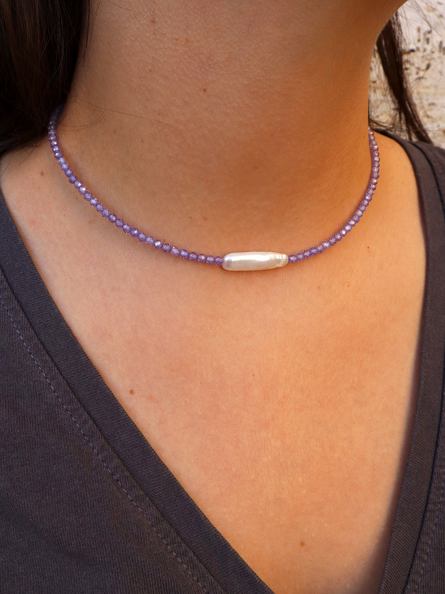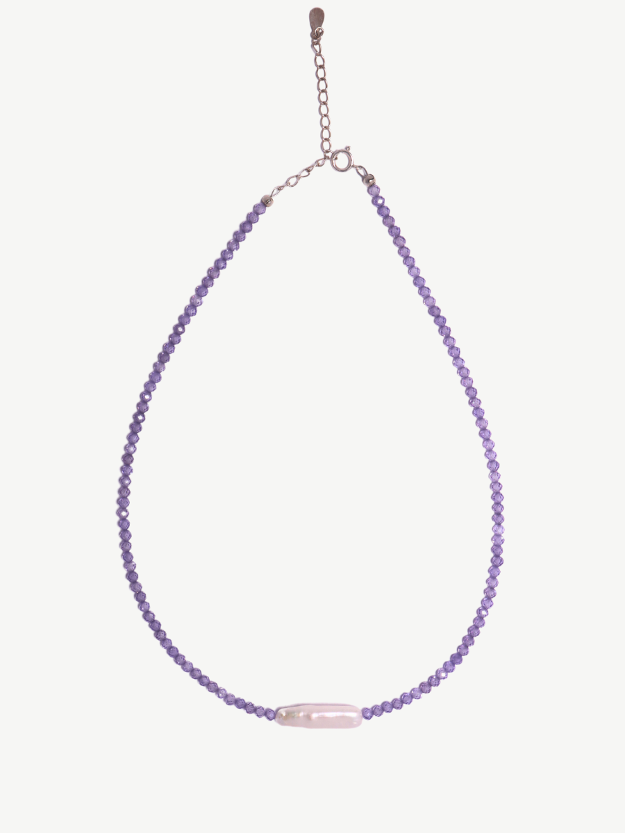 Colier cu perla de cultura si zirconiu - Liliac Haze
