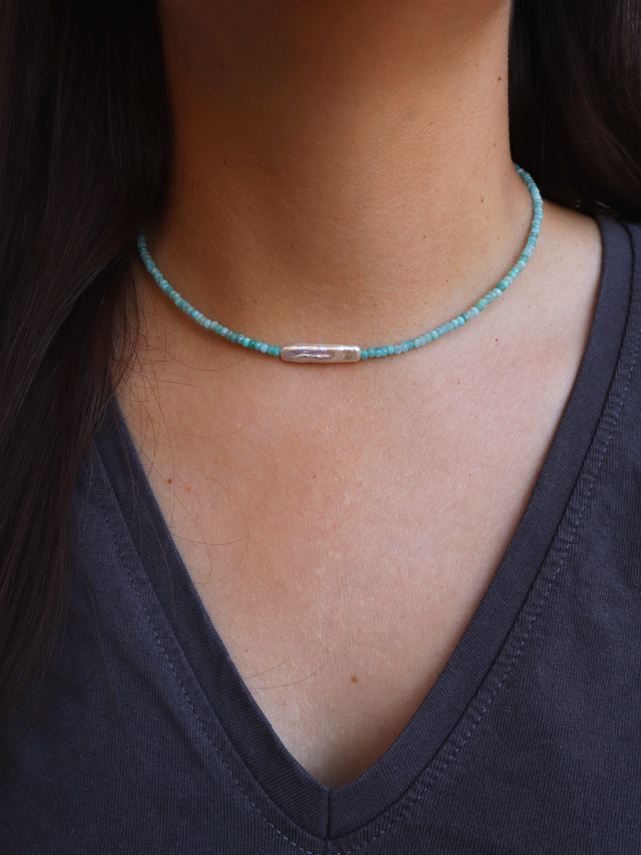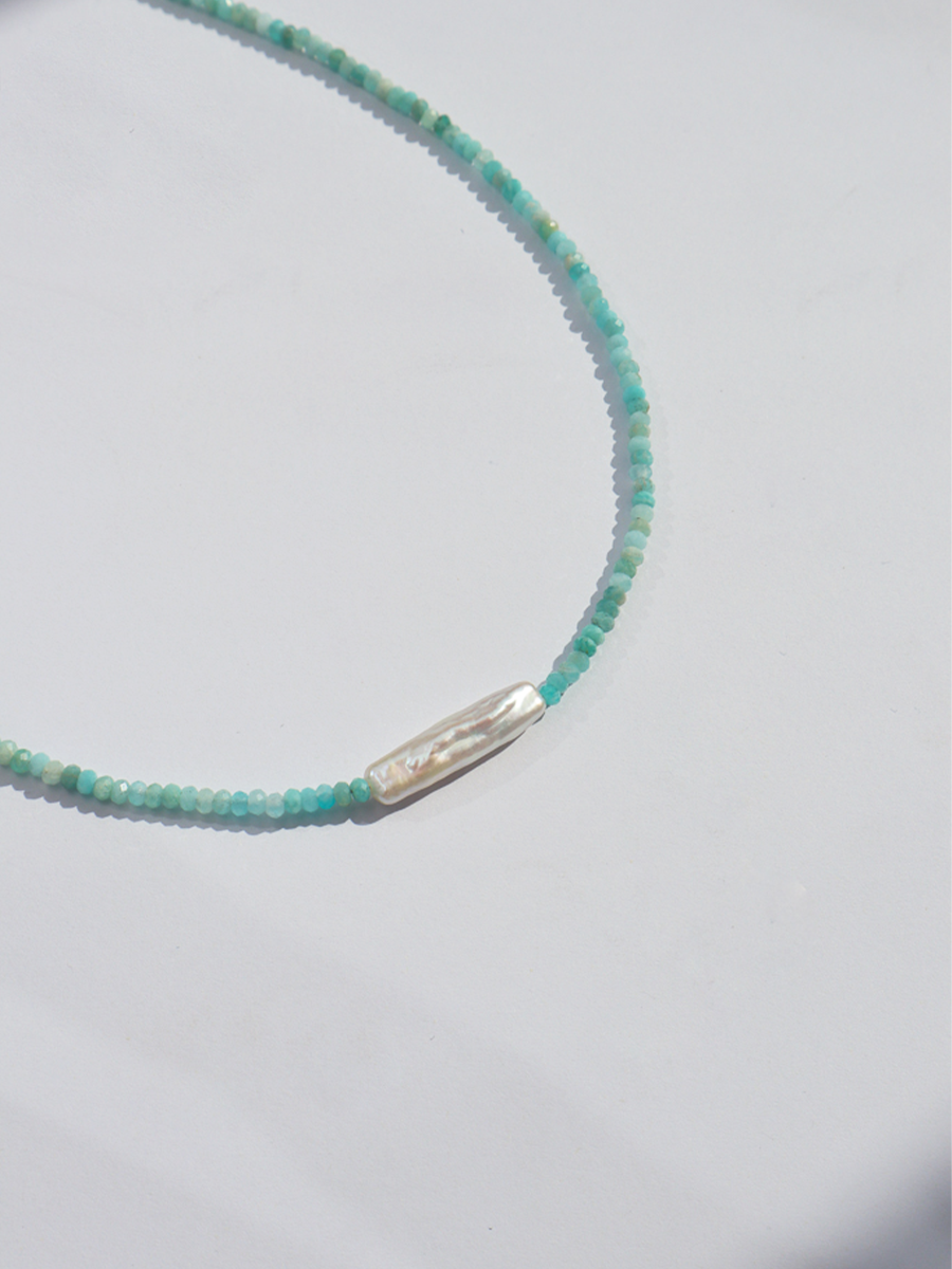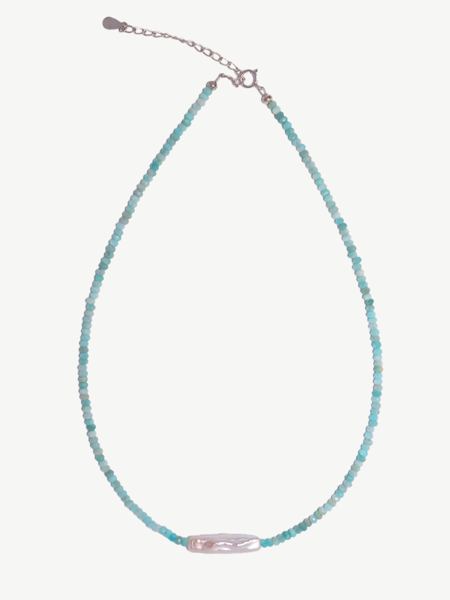 Colier cu perla de cultura si amazonit - Summer Breeze