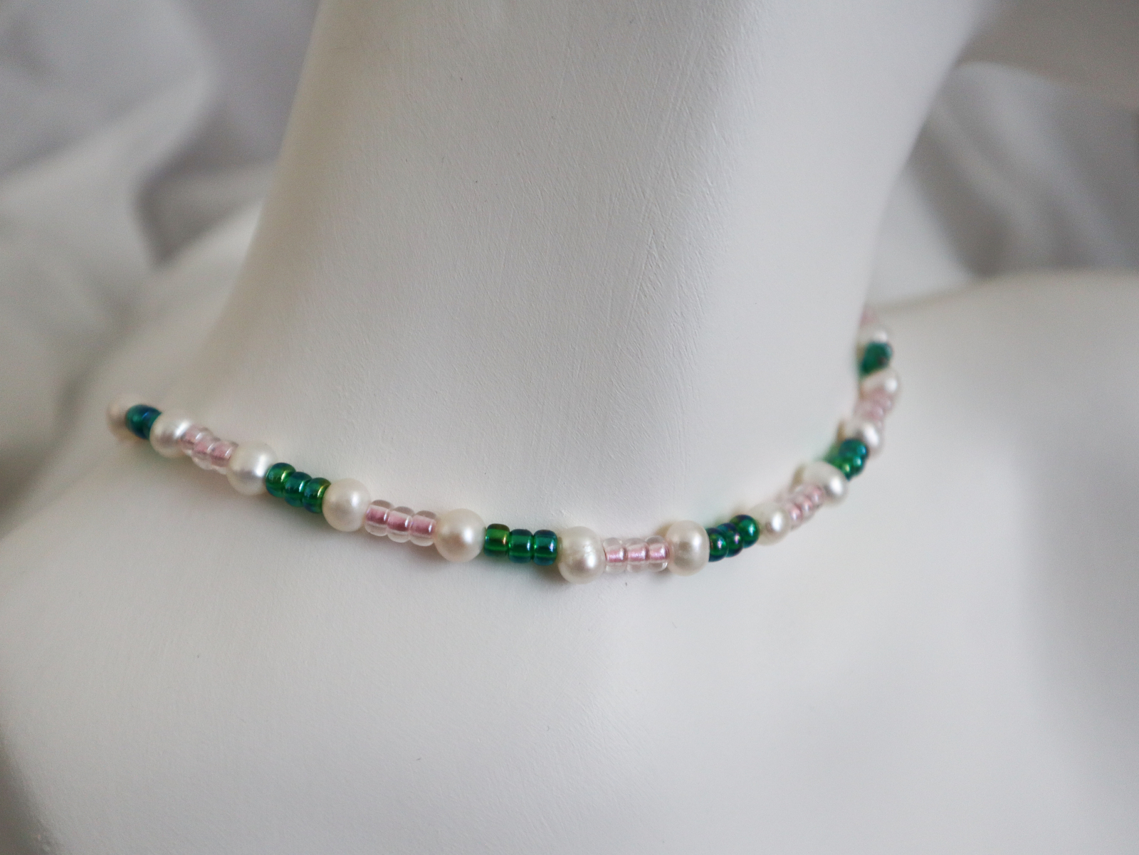 Colier cu perle de cultura, margele miyuki si accesorii din argint.